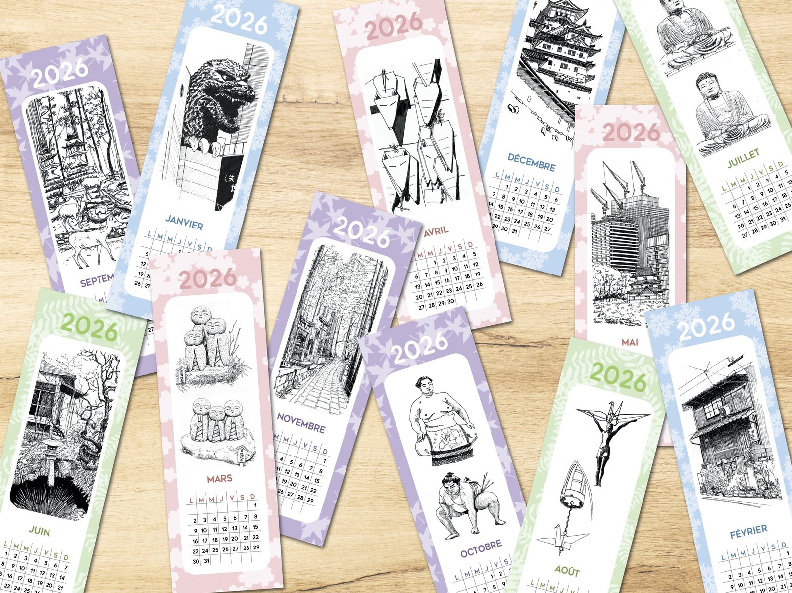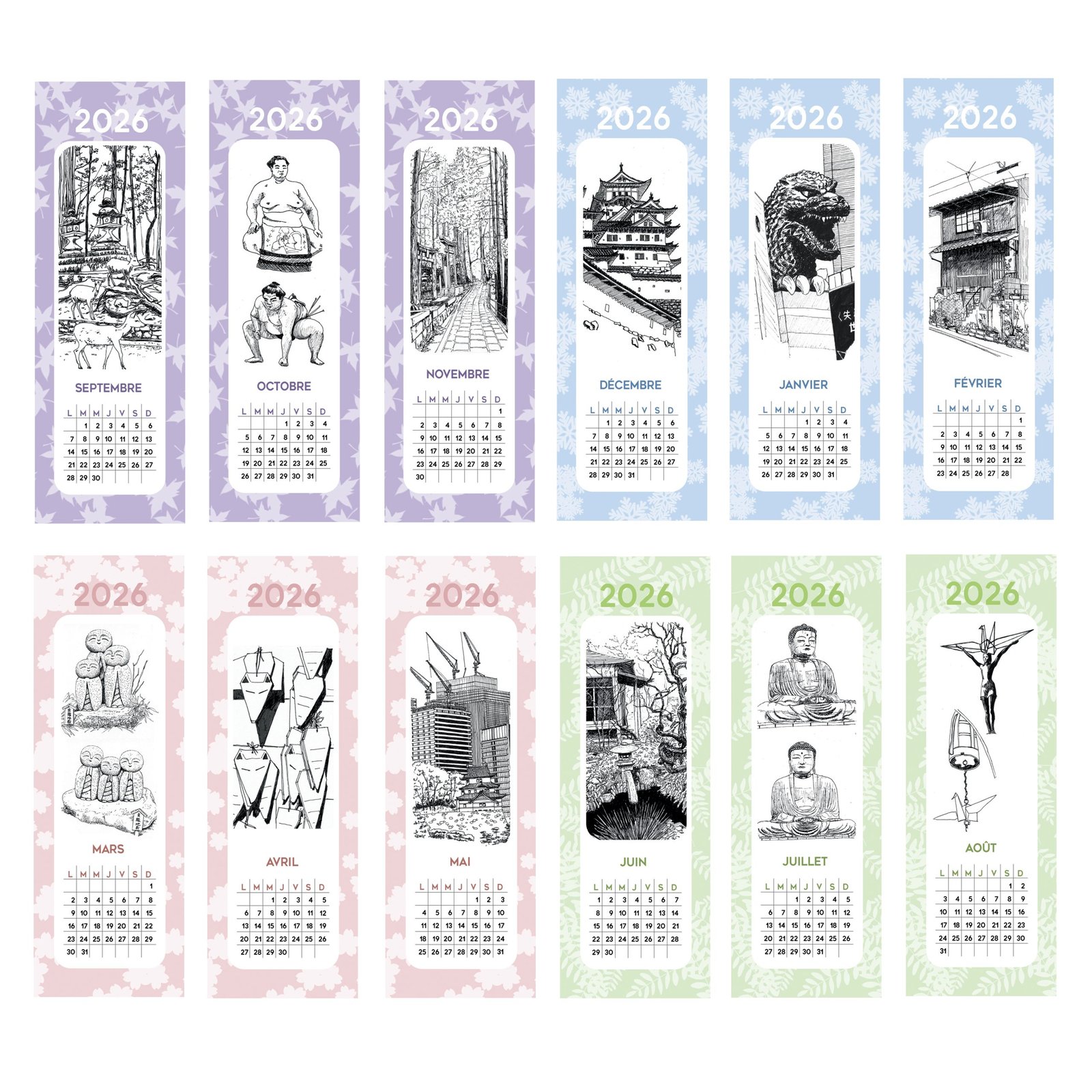 Calendrier 2026 – 12 marque-pages (1 marque-page par mois)
